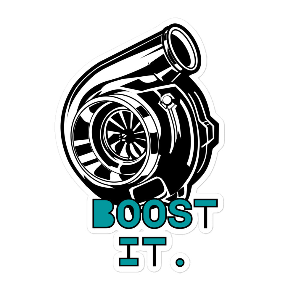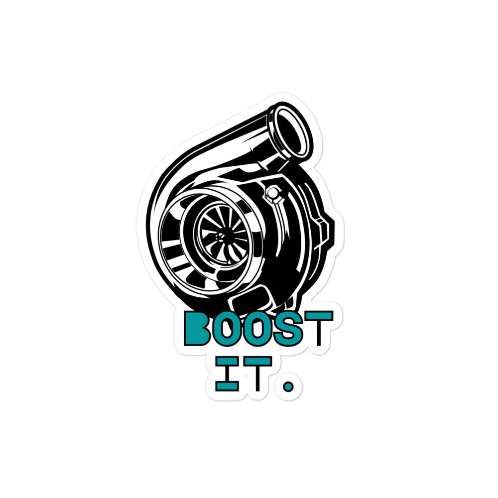 Take your car's style to the next level with the Boost It. Sticker. This high-quality sticker features a turbo design and is the perfect accessory for any car enthusiast looking to add a little extra flair to their ride.