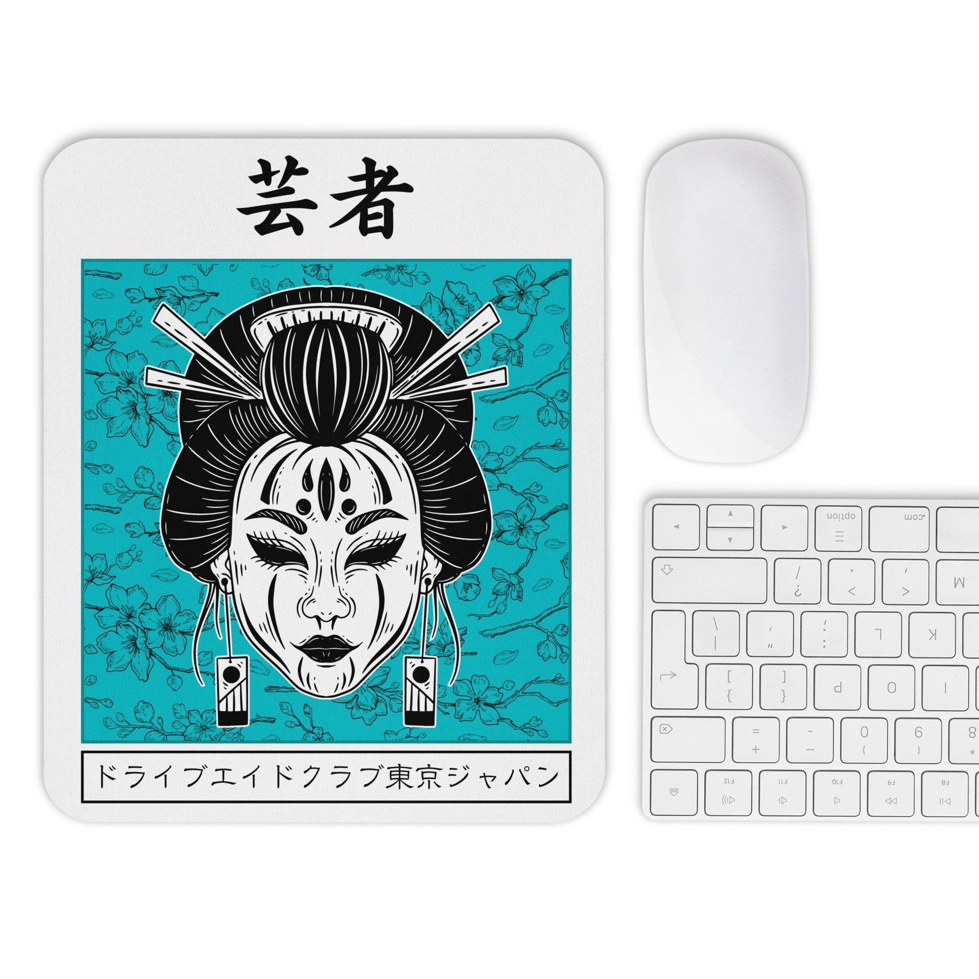 Geisha Blue Blossom Mouse Pad