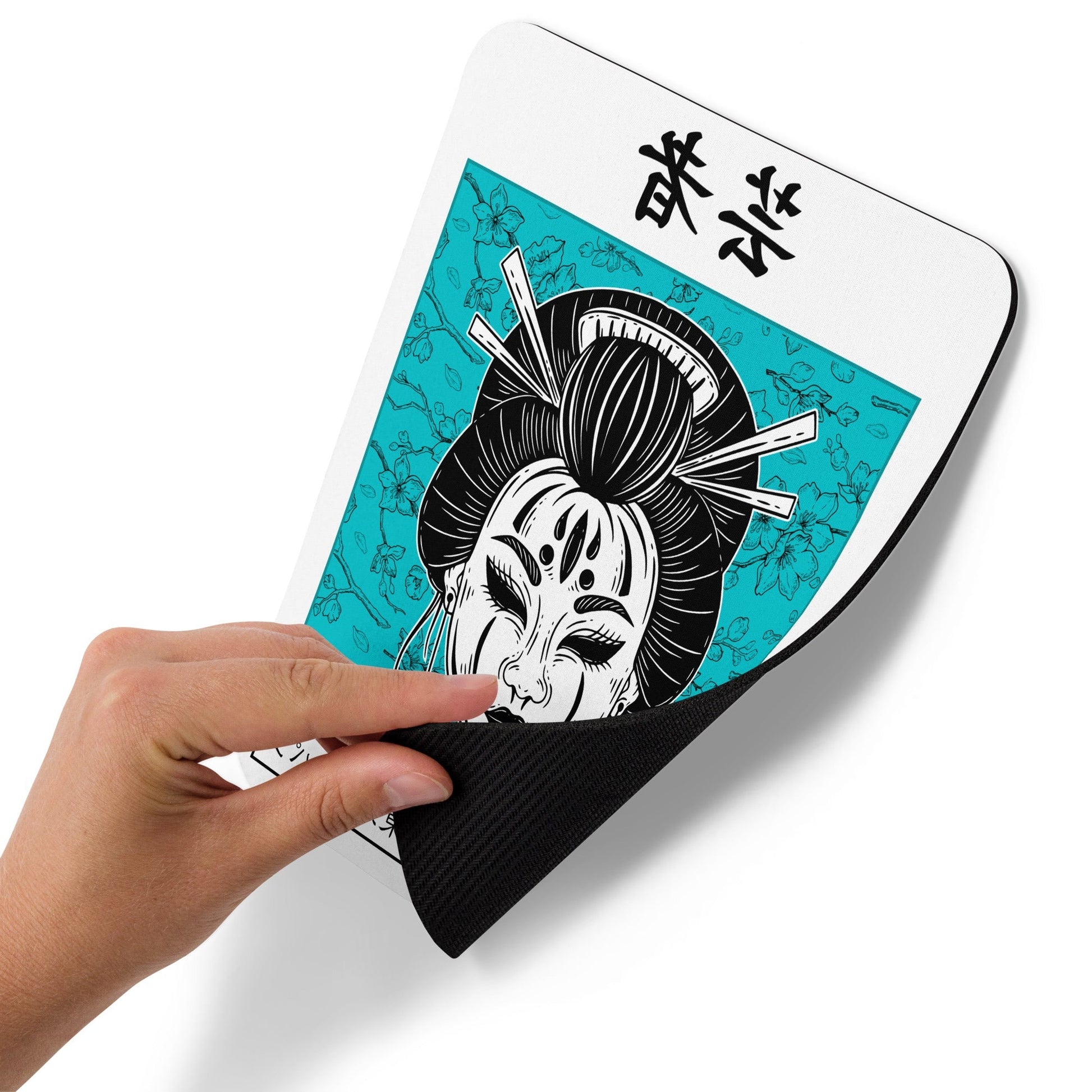 The Geisha Blue Blossom Mouse Pad features a beautiful and unique design that is sure to catch the eye of anyone who sees it. The intricate artwork depicts a sketch of geisha surrounded by graphic cherry blossoms, creating a stunning and elegant look that will elevate your desk setup.