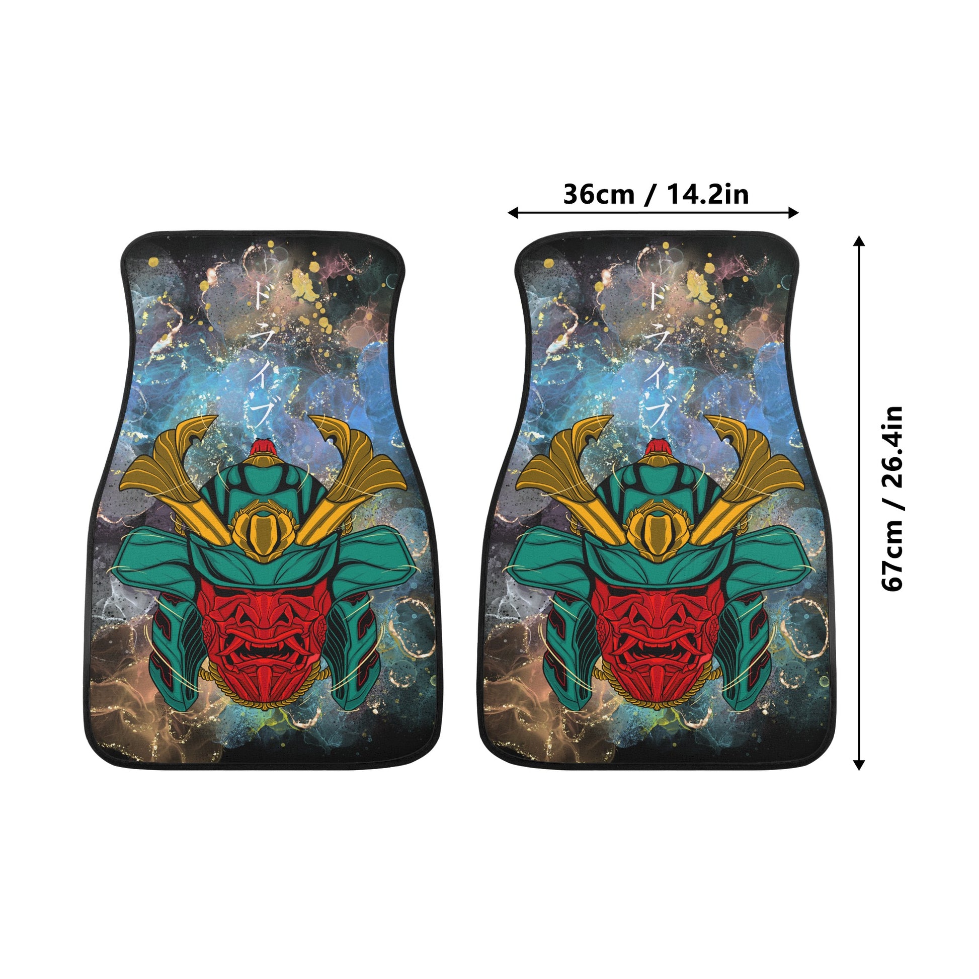 Our Samurai Art Car Floor Mats not only look great, they also provide superior protection for your vehicle's flooring against dirt, spills, and wear and tear. Made from high-quality materials and designed to fit most cars, these mats are durable and built to last.